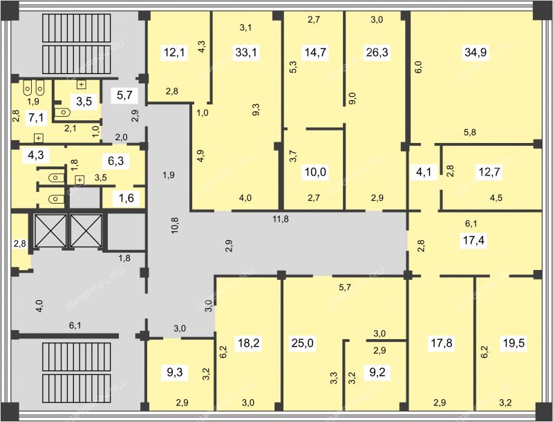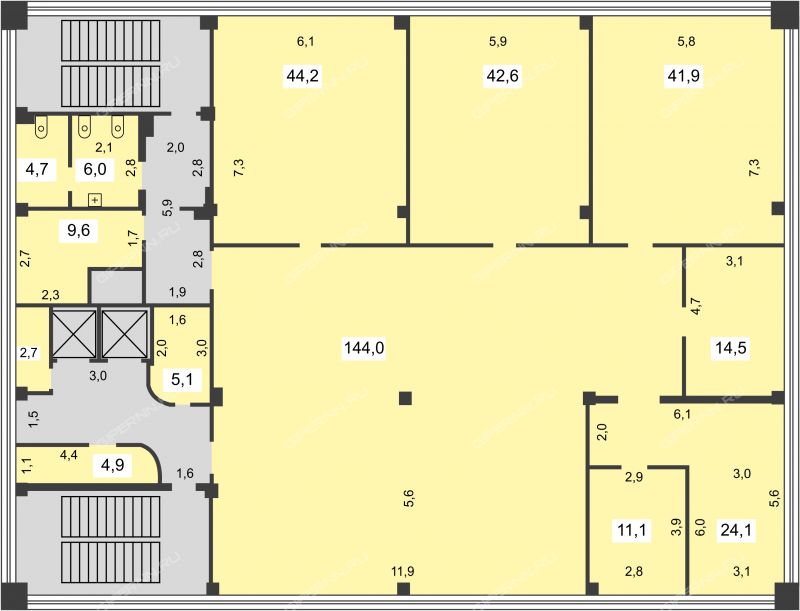 Площадь офисных помещений: