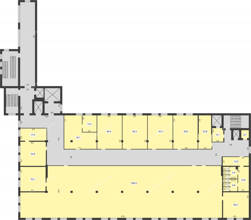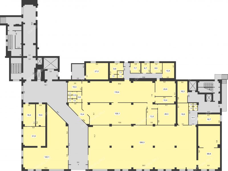 Площадь офисных помещений: