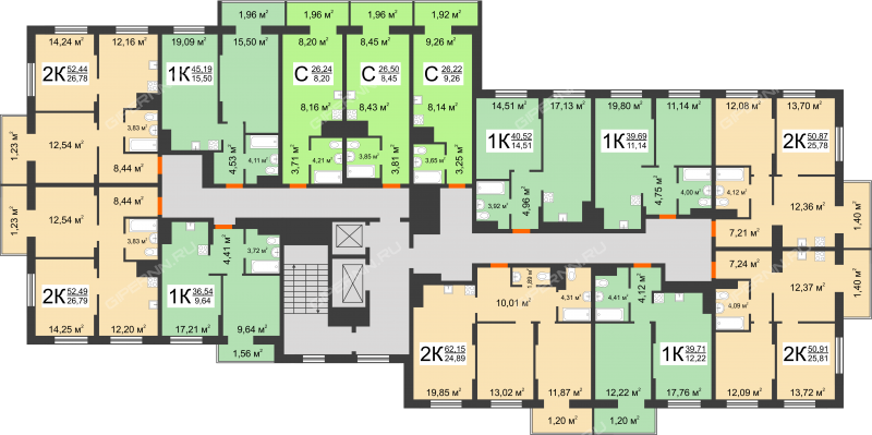 52,08 - 65,7 м²