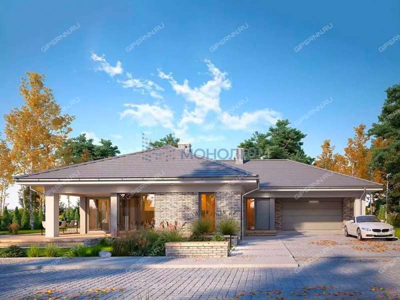 Большая гостиная 45 м2, отдельно кухня с кладовой, 4 комнаты-спальни, коридор, 2 санузла, прачечная, котельная, тамбур. В доме гараж на 2 машины с входом в дом.