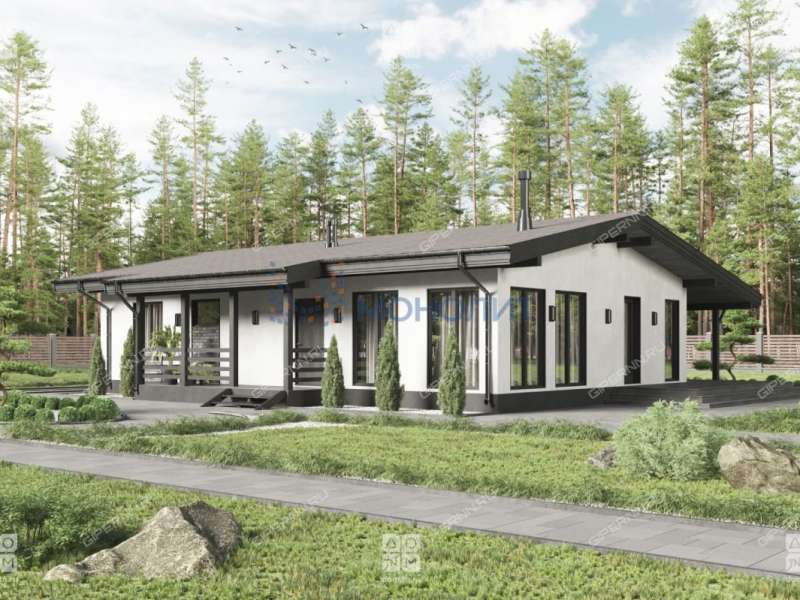 Тип строения: Одноэтажный коттедж с двускатной крышей