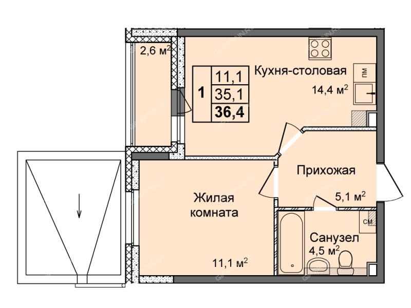 Продажа 1-комнатной квартиры в новостройке на ул. Коперника, 1