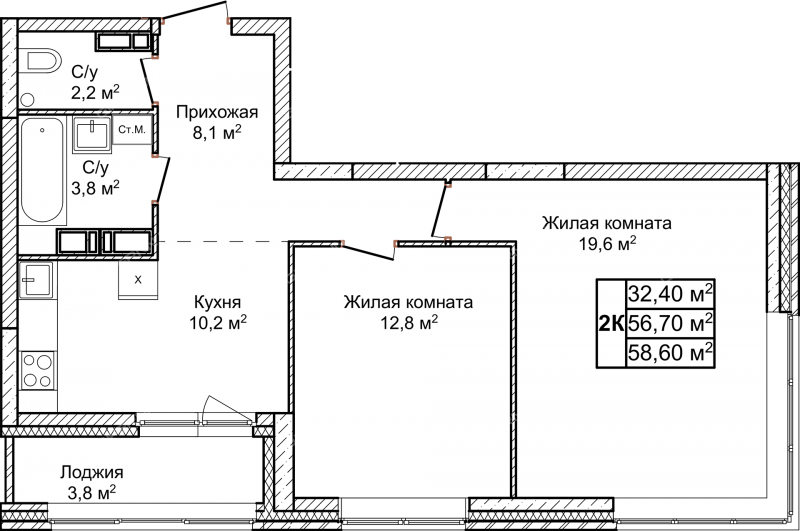 58,6 м²