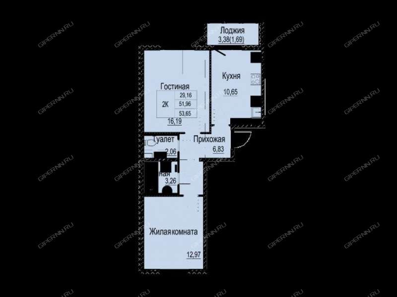 Общая площадь 53,66, жилая 26,19. кухня 10,65. Комнаты изолированные, окна выходят на разные стороны.