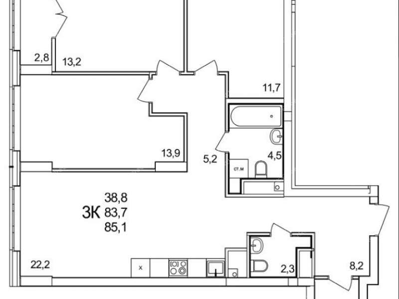 3 комнаты