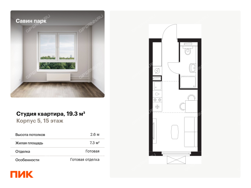 Продаётся квартира-студия площадью 19.30 кв.м на 15 этаже 15 этажного дома (Корпус 5, секция 1) проекта ПИК Савин парк. Светлый просторный подъезд на уровне земли, функциональная планировка, большие окна, с отделкой. <br> <br>Жилой квартал «Савин парк» возводится в Кстовском муниципальном районе, рядом с Советским районом Нижнего Новгорода. До центра Нижнего Новгорода всего 20 минут на автомобиле, а до города Кстово — 18 минут. <br> <br>В этом проекте есть всё для комфортной жизни. Кроме жилых домов , проект включает два детских сада, один из которых уже строится, школу и многоуровневые надземные паркинги. На первых этажах откроются кафе, магазины и другие сервисы — чтобы купить кофе к завтраку или пиццу на ужин, можно будет просто спуститься на лифте. На подземном этаже появятся кладовые, в которых удобно хранить крупные и сезонные вещи. <br> <br>Чтобы жители квартала чувствовали простор и получали больше солнечного света, мы построим дома разной высоты. Во дворах появятся уютные парки с детскими площадками и местами для отдыха — здесь можно поболтать с соседями, почитать в тени или позаниматься йогой. Спортивные площадки мы разместим так, чтобы шум от них не мешал жителям. <br> <br>В квартирах тоже будет много солнечного света за счёт балконов и больших окон. На выбор есть множество функциональных планировок, все они продуманы так, чтобы как можно большая площадь использовалась для жизни. Вы получите ключи от квартиры с уже готовой отделкой — можно заезжать и жить. <br> <br>На машине от «Савин парка» можно доехать до ТРЦ «МЕГА» за 7 минут, за 14 минут — до Анкудиновского леса, а за 20 — до «Щёлоковского хутора». Артикул - 952494