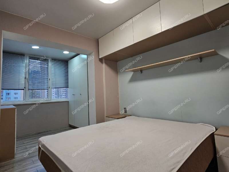 Спальня 10 кв м + 2.3 кв м теплая лоджия. В спальне остаются шкафы, большая кровать с матрасом.