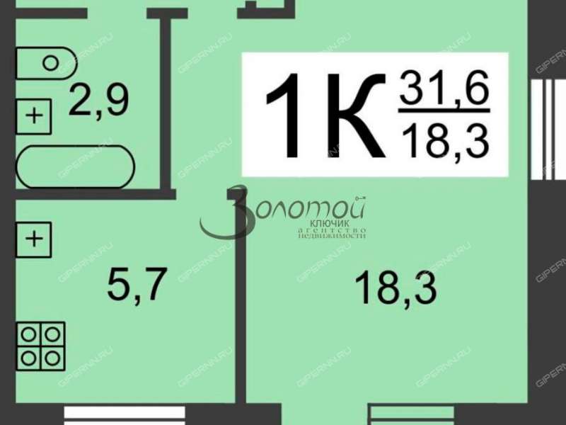 Квартира имеет удачную планировку: кухня 5.7 кв.м, комната 18.3 кв.м, совмещённый санузел, просторная прихожая .