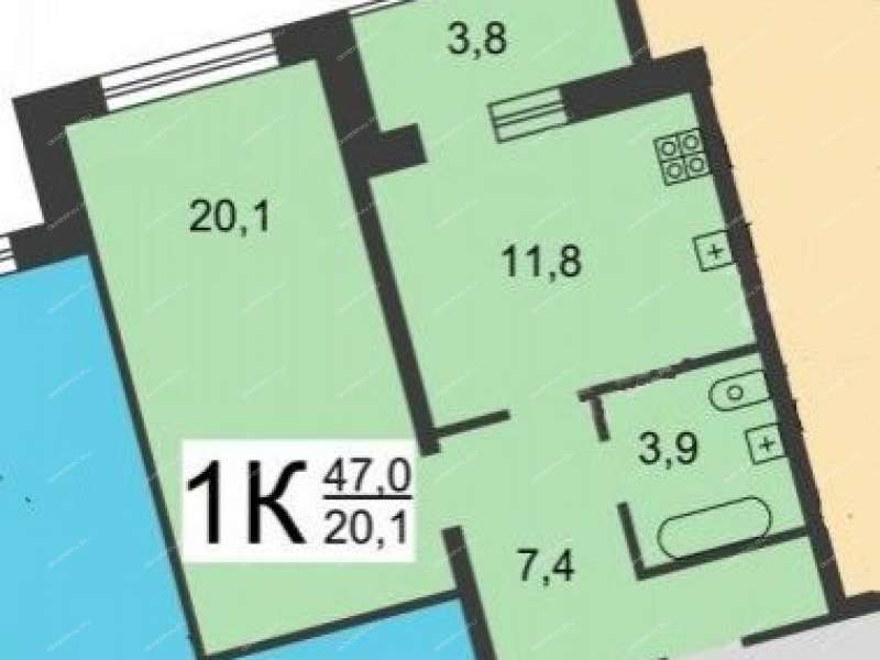 Общая площадь 47,0 кв.м. (официально по ЕГРН плюс лоджия).