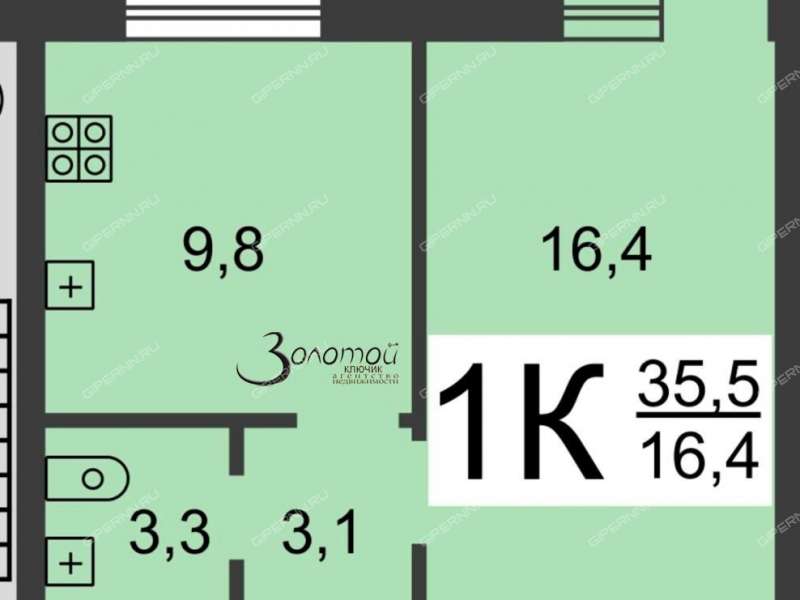 Общая площадь 35,5 кв.м.