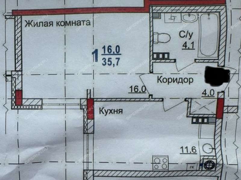 - Общая площадь 35,7 м