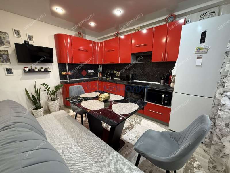 Бoльшaя кухня 12 кв.м (оcтаетcя куxонный гapнитур c вapoчнoй панелью и духовой шкаф). Совмещенный санузел в плитке, застекленная лоджия, также остается большой встроенный шкаф-стенли в зале.