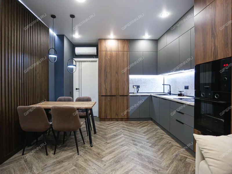 Установлены встроенные кондиционеры в спальне и кухне-гостиной. Магнитные беспетельные межкомнатные двери.