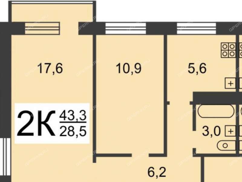 43,6 м²