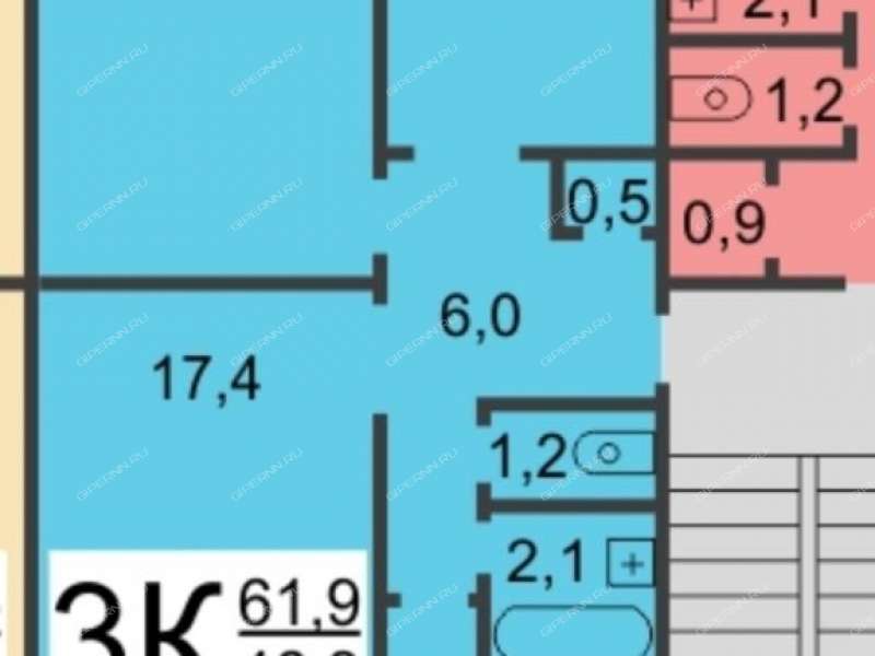 - Общая площадь 61,9 кв.м.