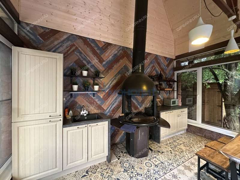 Так же на территории имеется крытый мангал с печью для казана и принадлежности для мангала, казан.