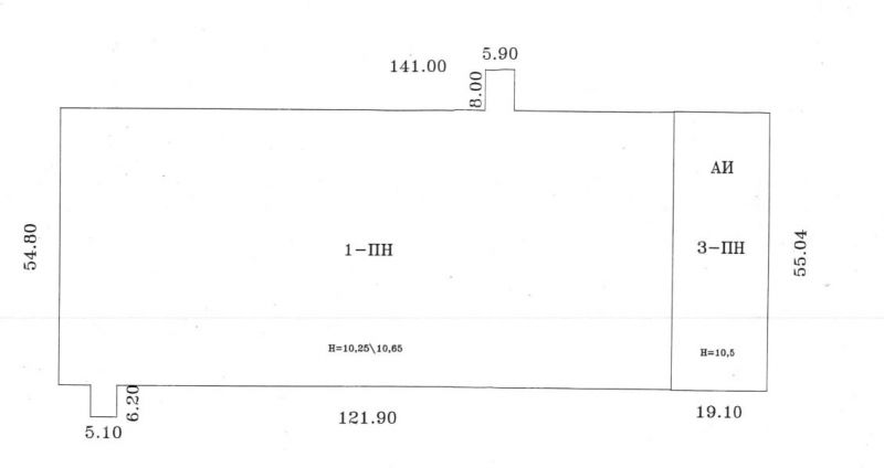 Здание состоит из двух частей: одно объемная производственная часть общей пл. 6680 кв. м и трехэтажная часть АБК общей пл. 2942,5 кв. м. Высота здания 10,25/10,5 м. Здание крупнопанельное, требует капитального ремонта. 7лет не эксплуатируется. Здание построено в 1984 году.