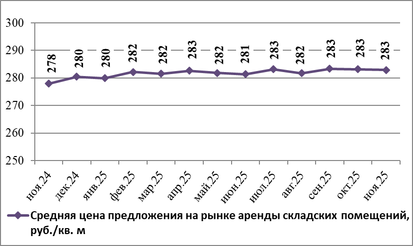 По данным Gipernn.ru на рынке аренды складских помещений в Нижнем Новгороде в ноябре 2025 года средняя цена предложения составила 282,94 руб./кв. м. По сравнению с предыдущим месяцем она понизилась на 0,09%.