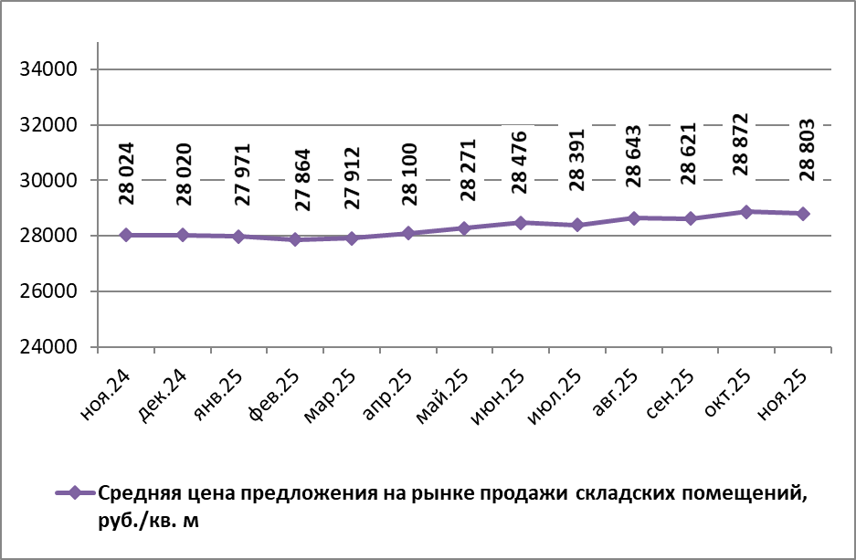 По данным Gipernn.ru на рынке продажи складских помещений Нижнего Новгорода в ноябре 2025 года средняя цена предложения составила 28 803,13 руб./кв.м. По сравнению с предыдущим месяцем она понизилась на 0,24%.