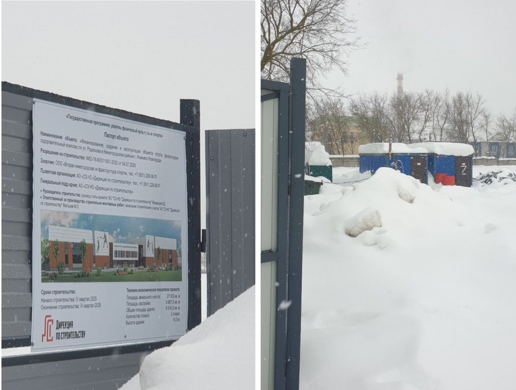Затем, в ходе подготовки к строительству, в земле обнаружили крупногабаритные обломки железобетонных конструкций. Это остатки незавершенного ФОКа, рассказал наш источник. Говорилось, что конструкции этого недостроя снесли весной 2024 года, оказалось — не до конца. Из-за них потребовалось проводить дополнительные инженерные изыскания. Сейчас площадка занесена снегом. Ни охраны, ни людей — все открыто, говорит собеседник GIPERNN.RU.