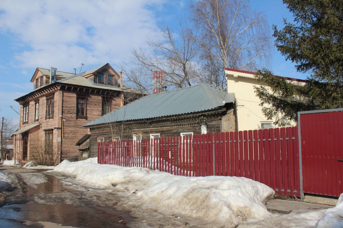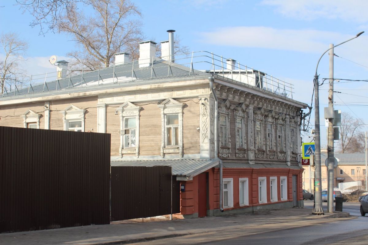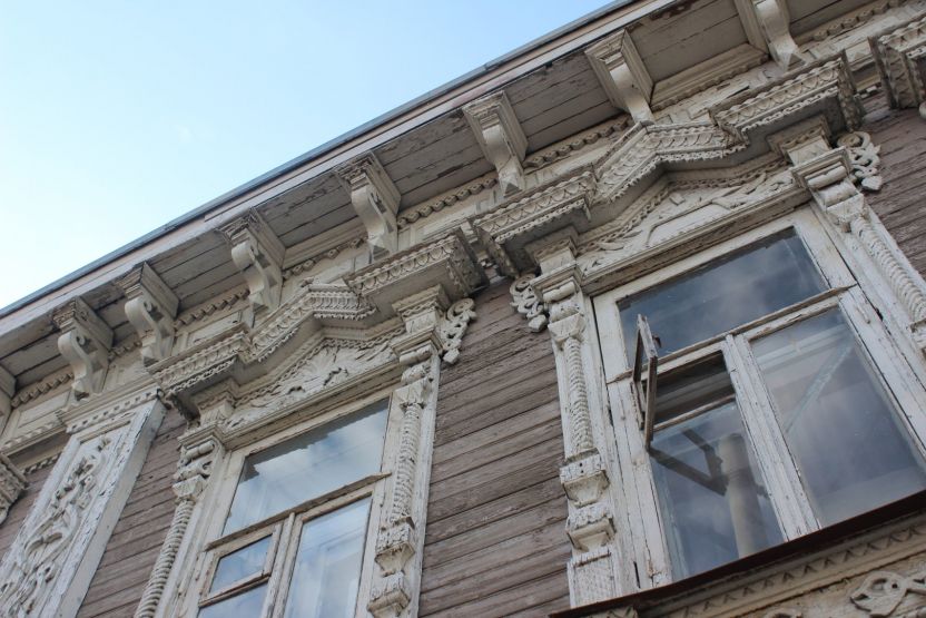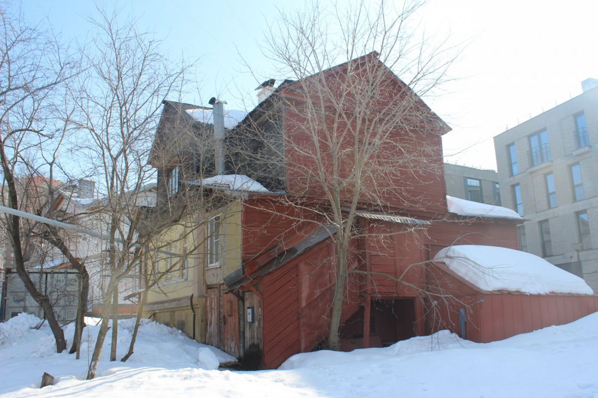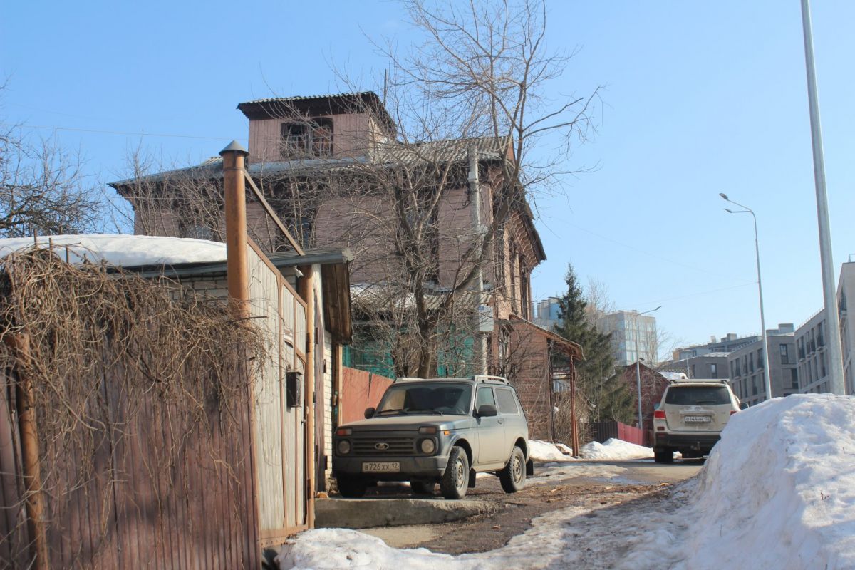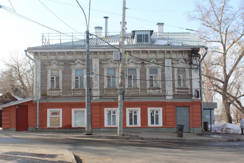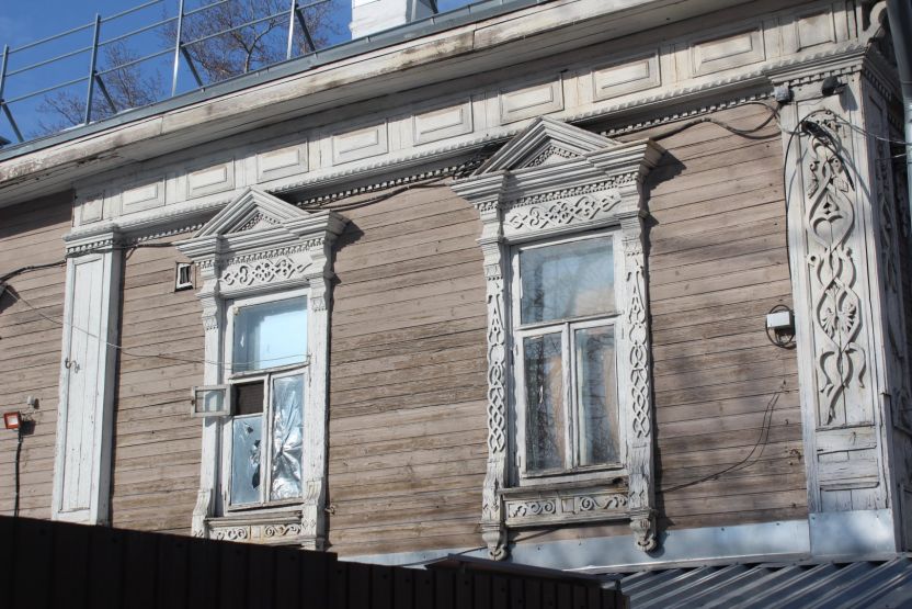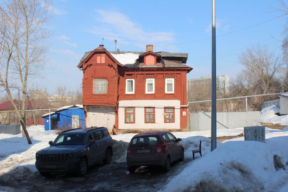 Аналогичное впечатление производит соседняя двухэтажка № 13 — тоже ценный градостроительный объект. При создании ИТ-квартала ее хотят выдвинуть вперед, ближе к дороге. Сейчас дом выкрашен в тот же цвет терракоты, правда, только с уличной стороны. Его украшают эркер и необычная резьба.