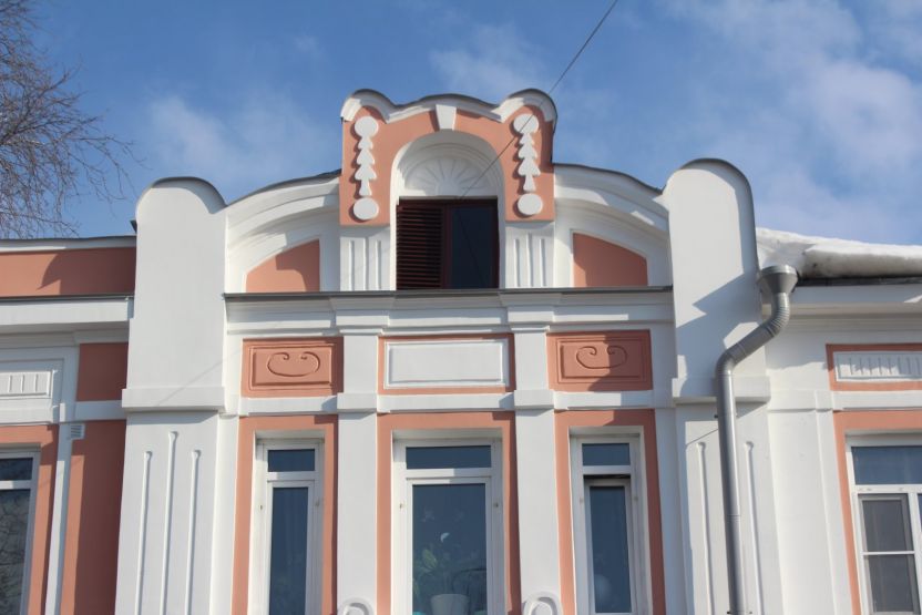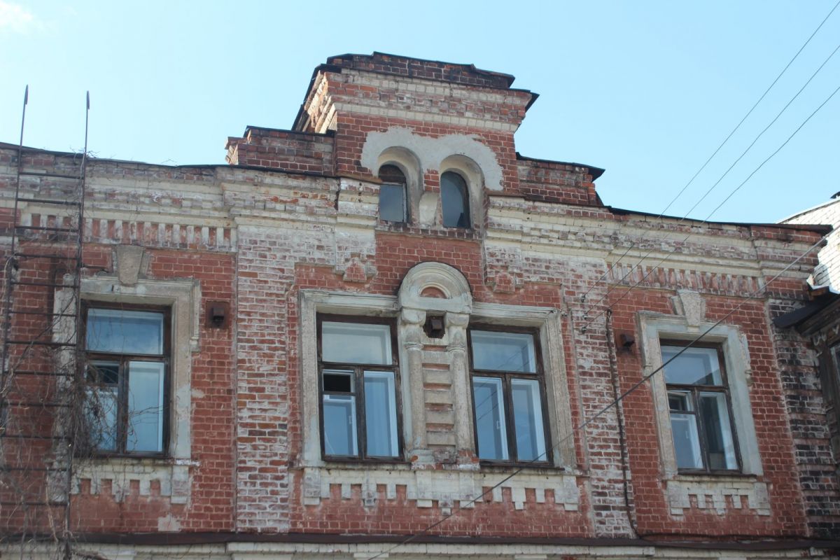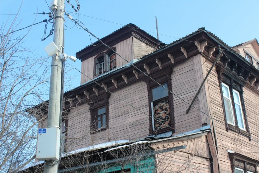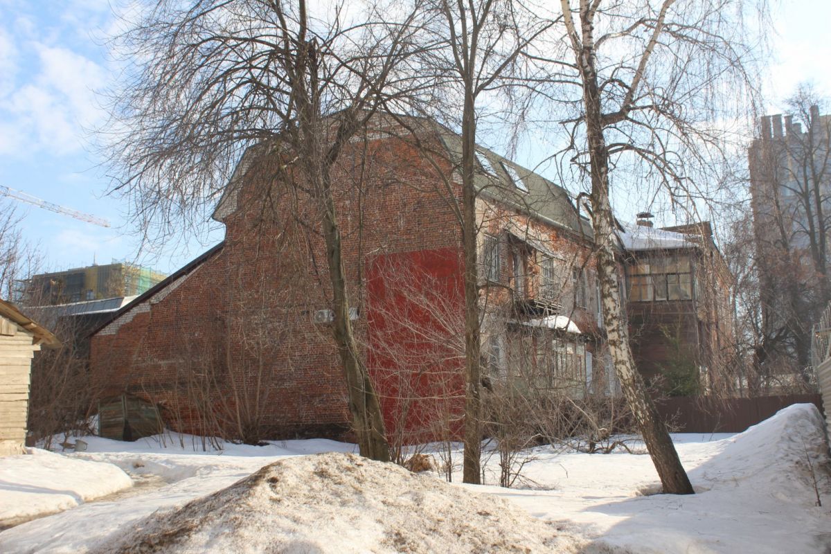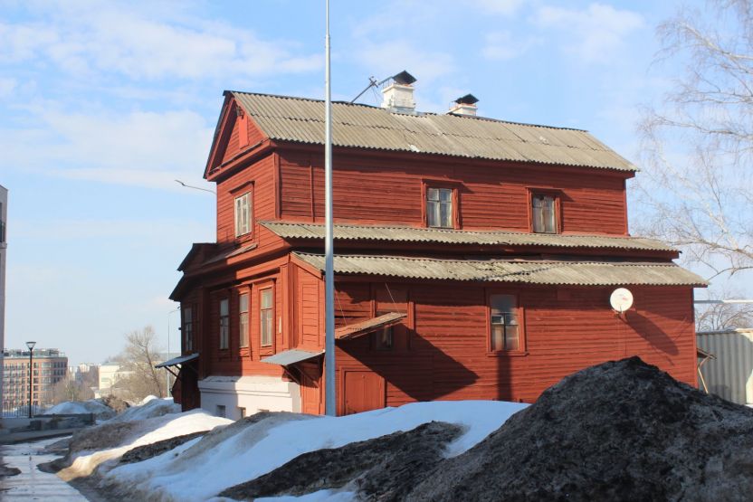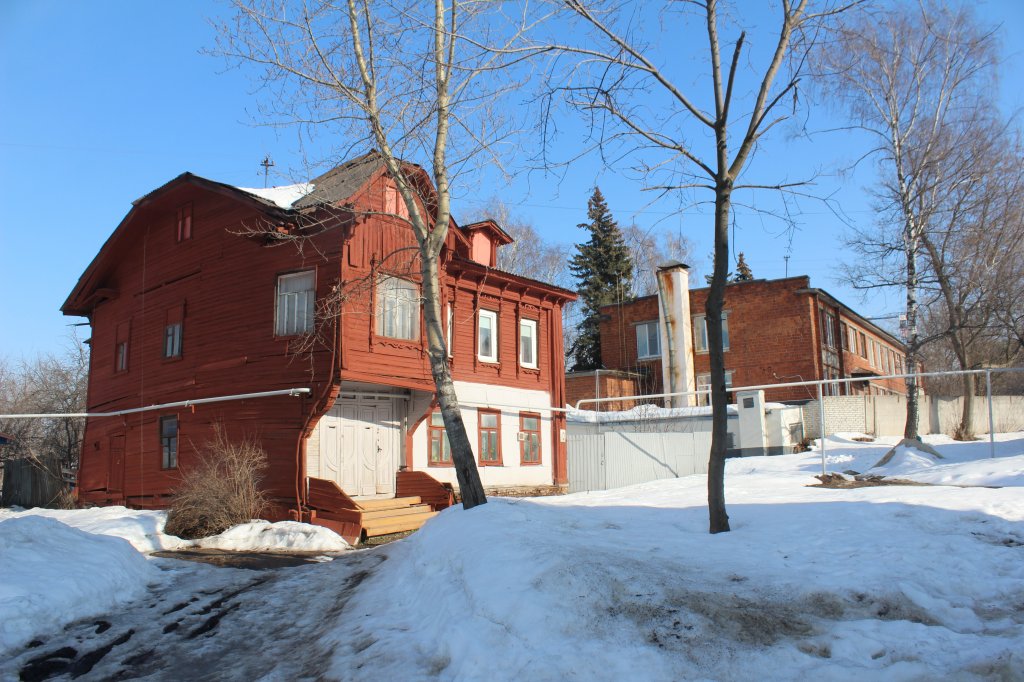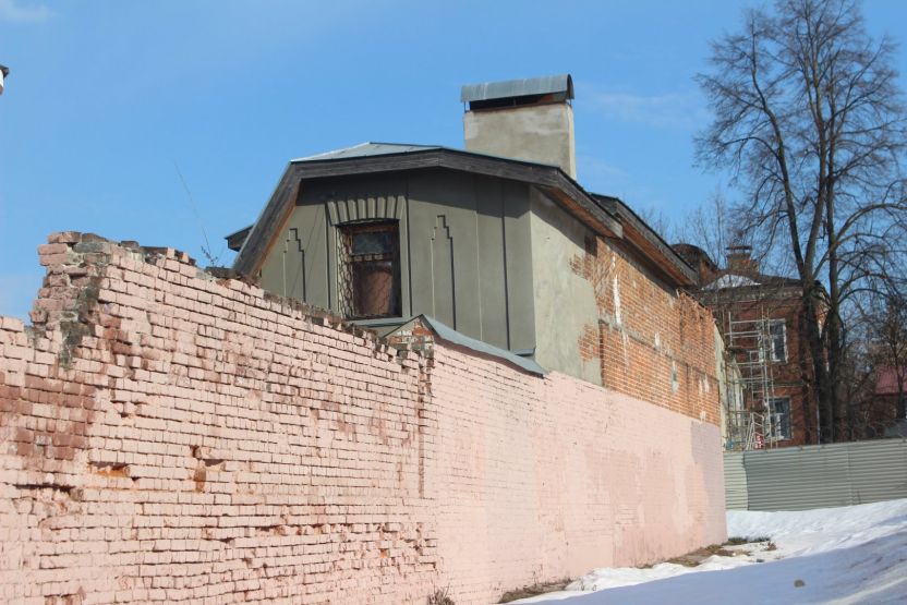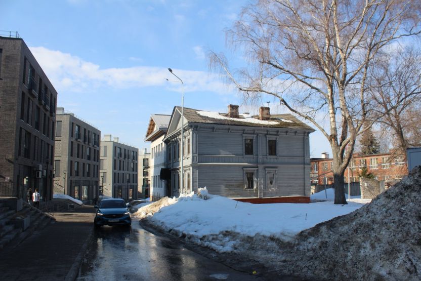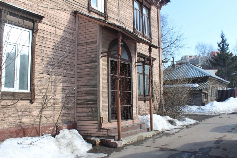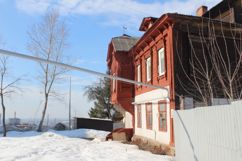 Аналогичное впечатление производит соседняя двухэтажка № 13 — тоже ценный градостроительный объект. При создании ИТ-квартала ее хотят выдвинуть вперед, ближе к дороге. Сейчас дом выкрашен в тот же цвет терракоты, правда, только с уличной стороны. Его украшают эркер и необычная резьба.