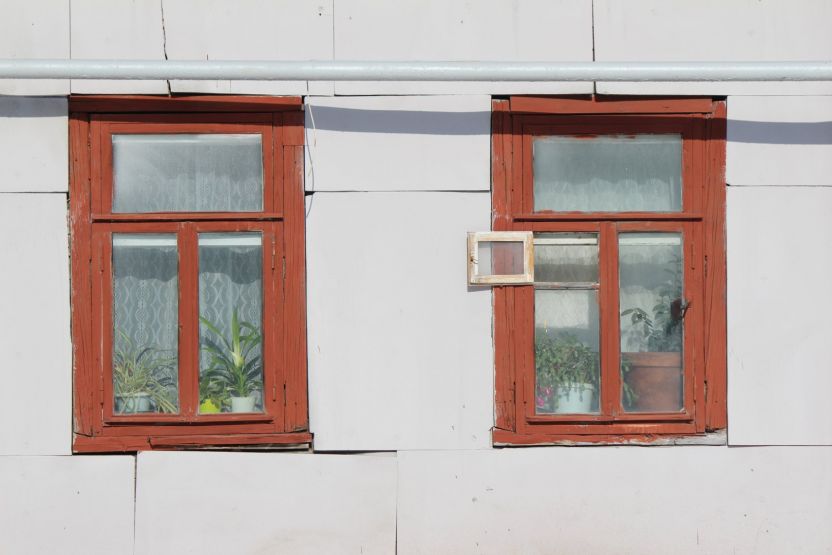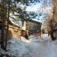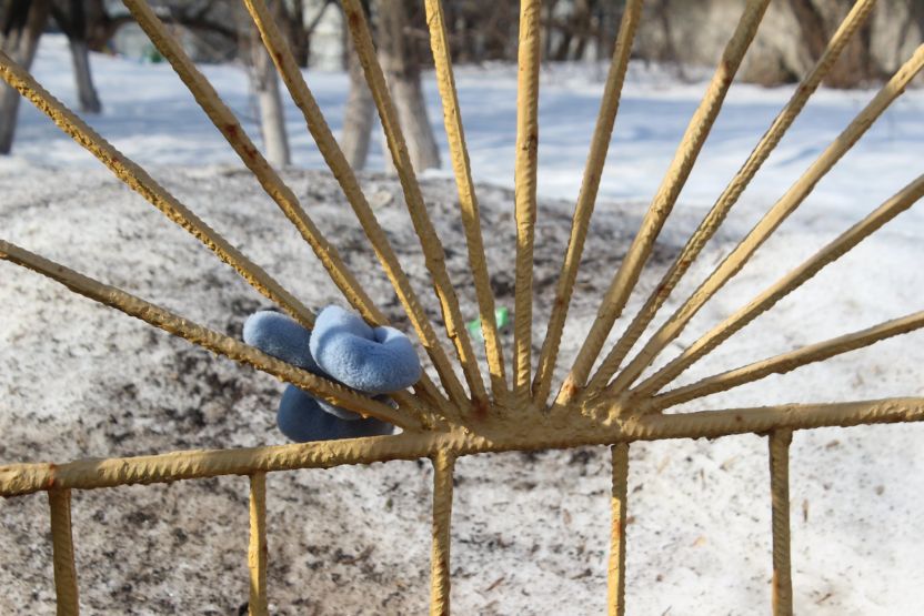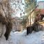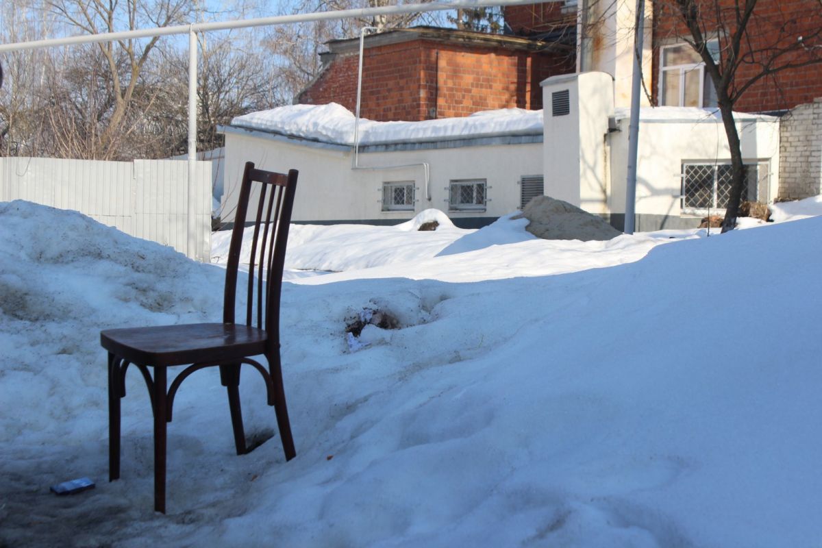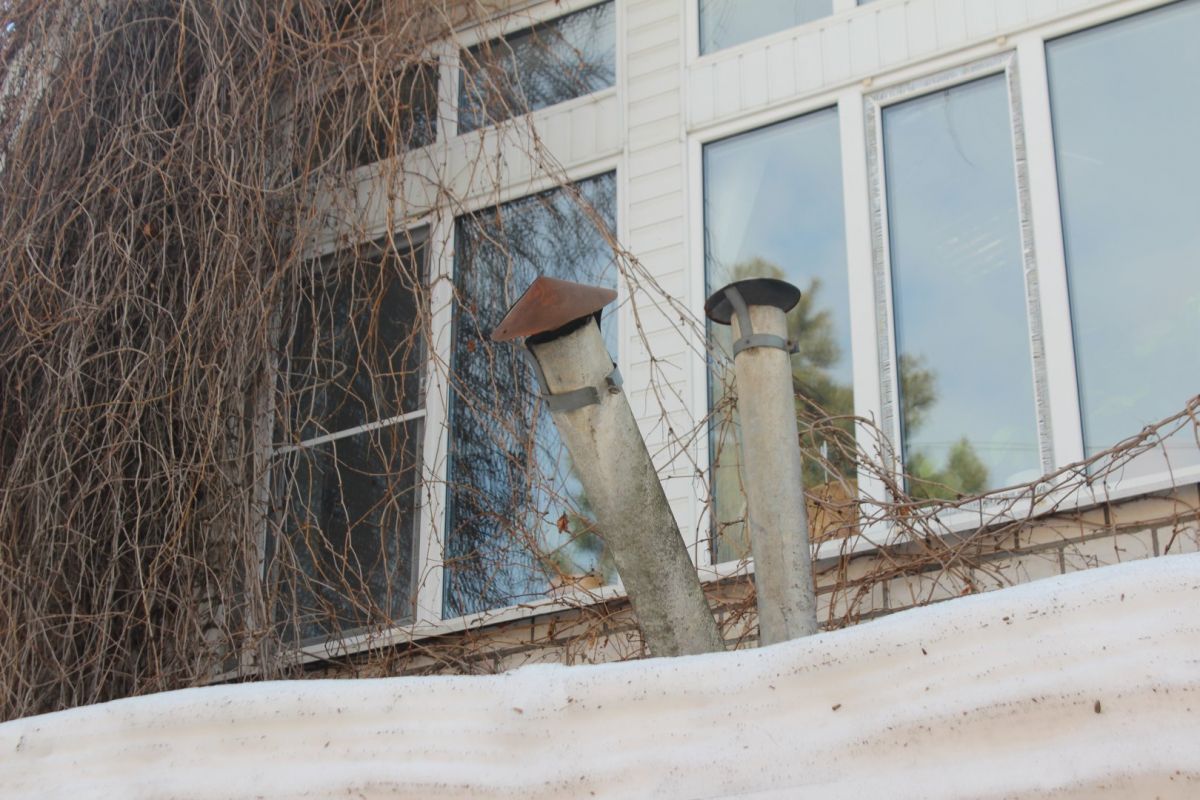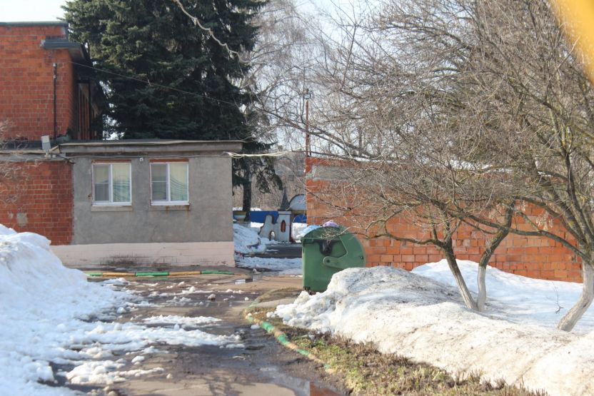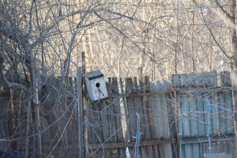 Во дворе этих двух домов все напоминает о старом укладе жизни. Есть колонка, к которой протоптана тропа: сюда люди ходят за водой. За двухэтажкой с эркером можно увидеть старую мебель и скворечник. А еще здесь проходит теплотрасса, над которой цветет первая в городе мать-и-мачеха.