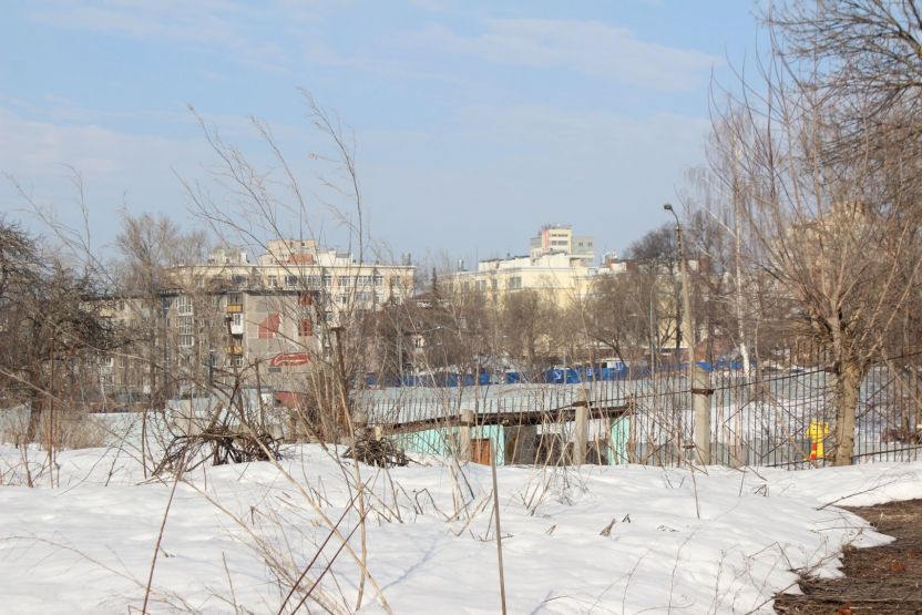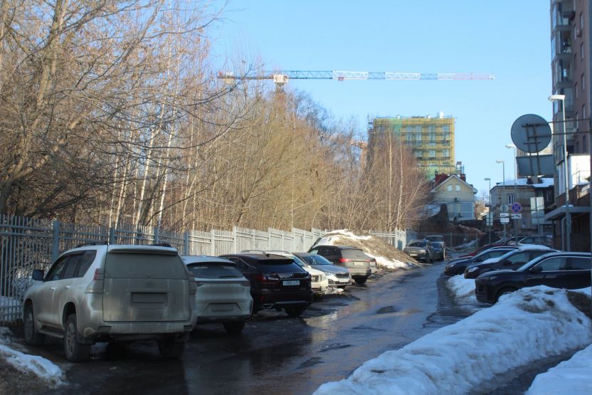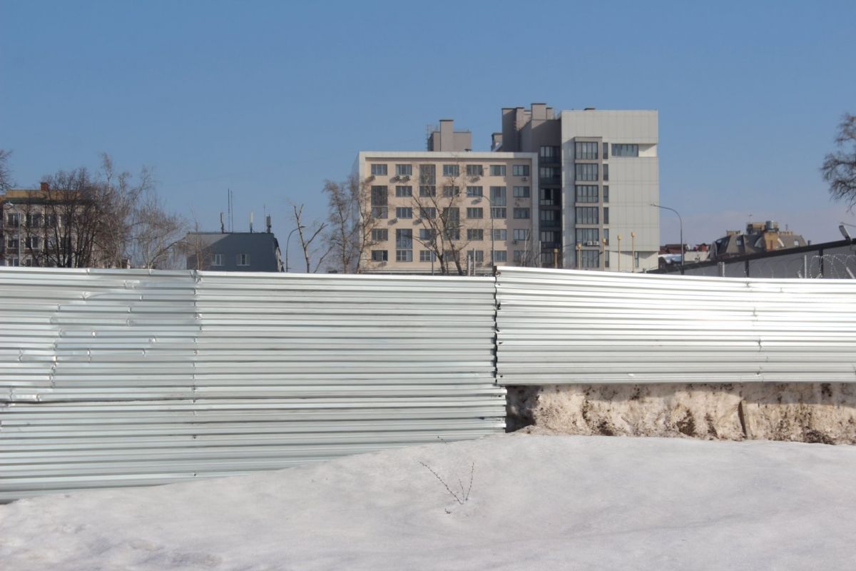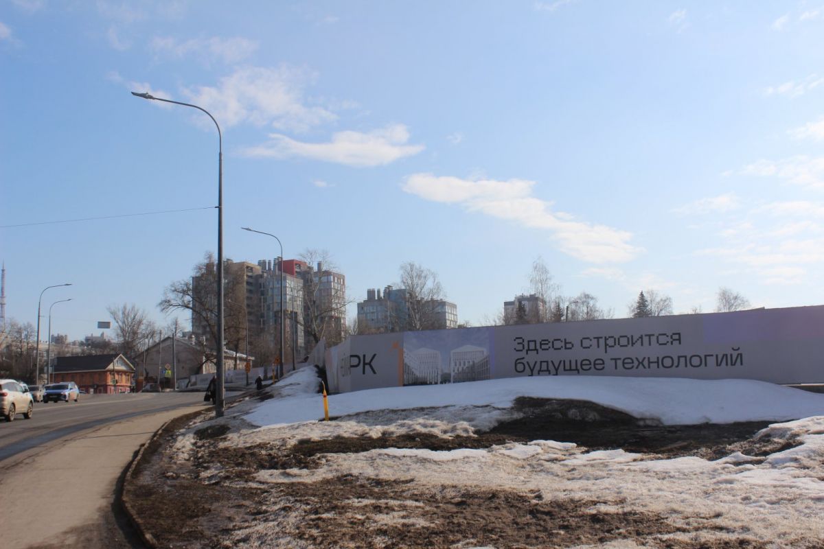 С другой стороны квартала долгое время находился пустырь. В 2023 году его обнесли забором, на котором появилась вывеска компании «Монотек Строй» — эта фирма возводит все корпуса ИТ-кампуса в Нижнем Новгороде. За ограждением соорудили стройгородок, однако никаких работ на площадке не начинали. Сейчас вывеску с забора сняли, но на территорию заезжают автомобили.