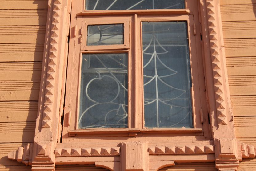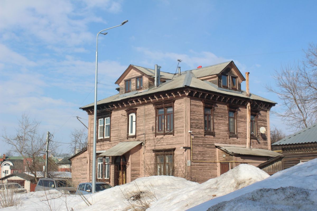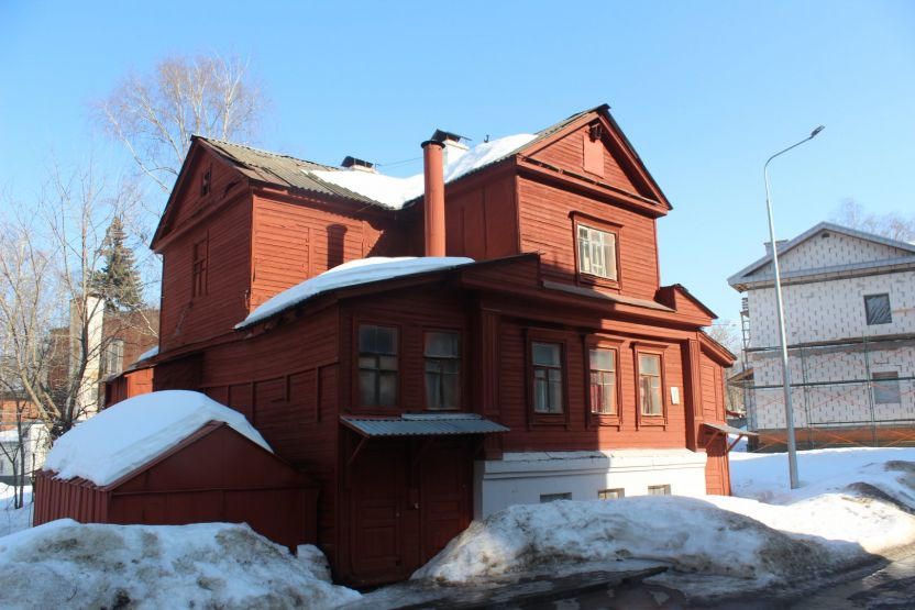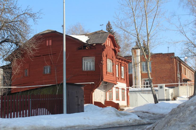 Ярко-терракотовый дом № 11 — ценный объект градостроительной среды. Здание с высоким крыльцом и мезонином необычной формы напоминает теремок и сразу привлекает к себе внимание.