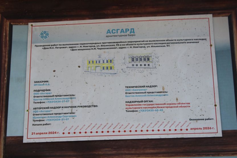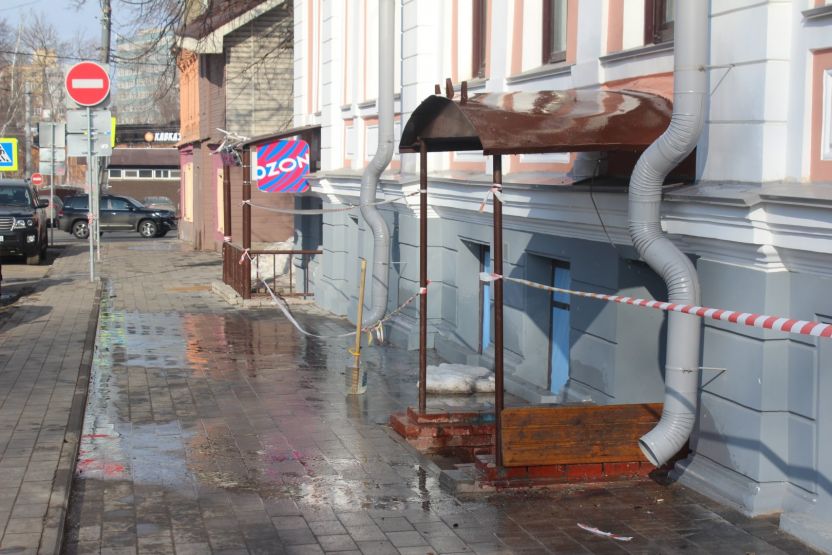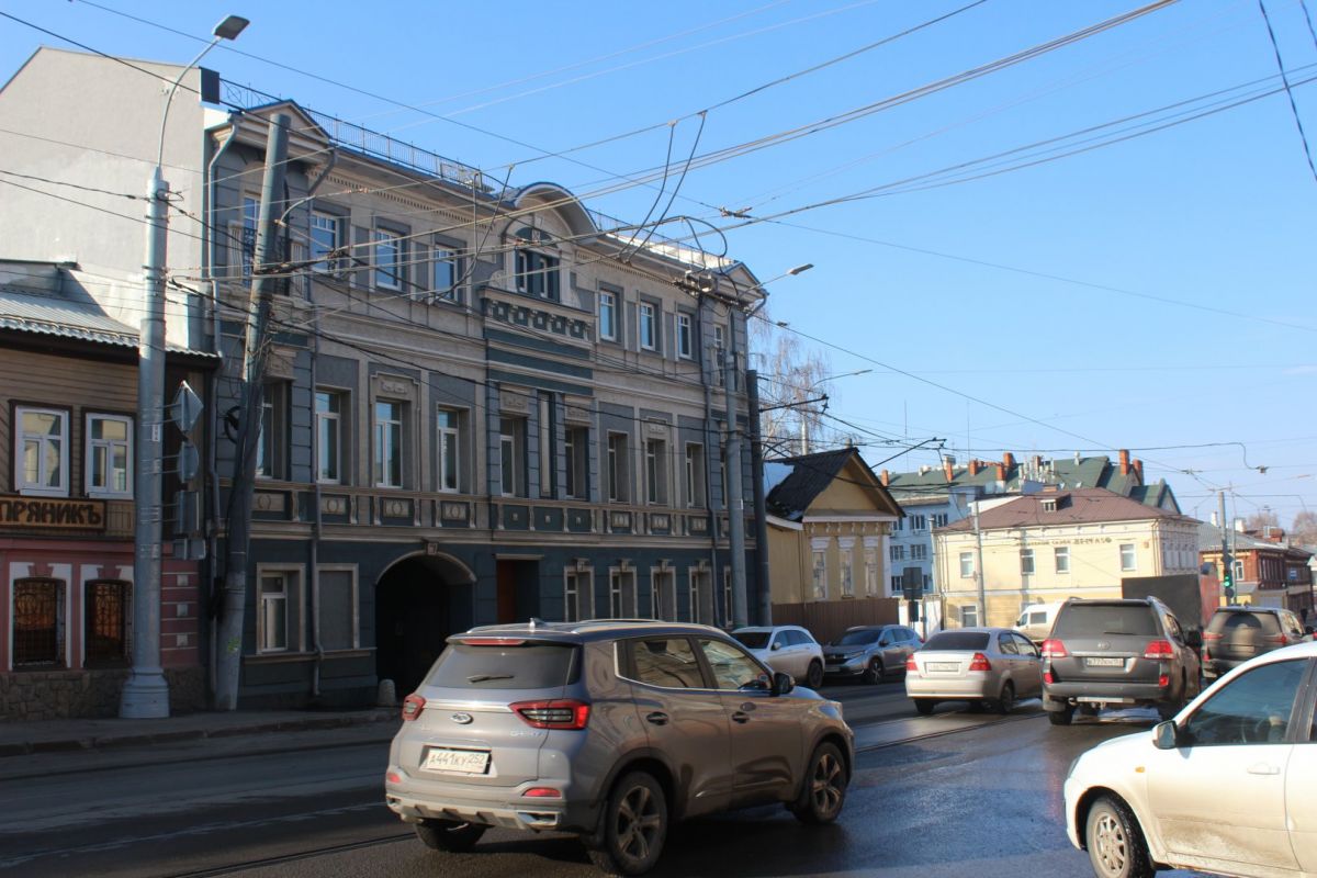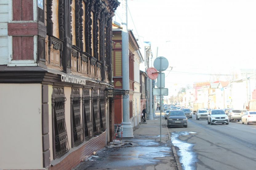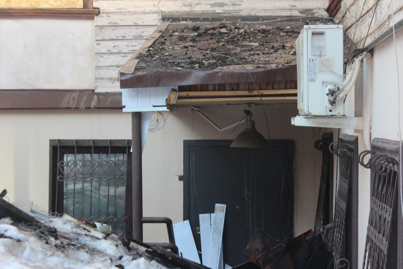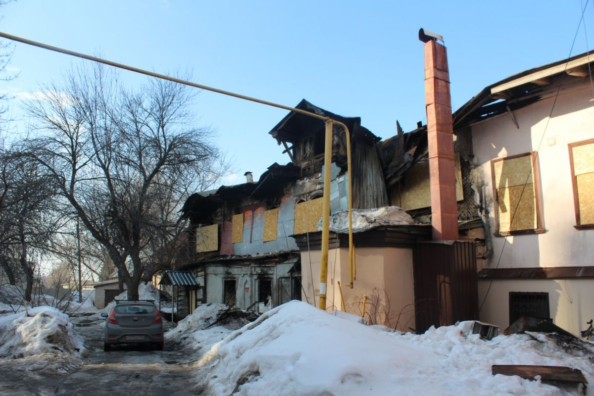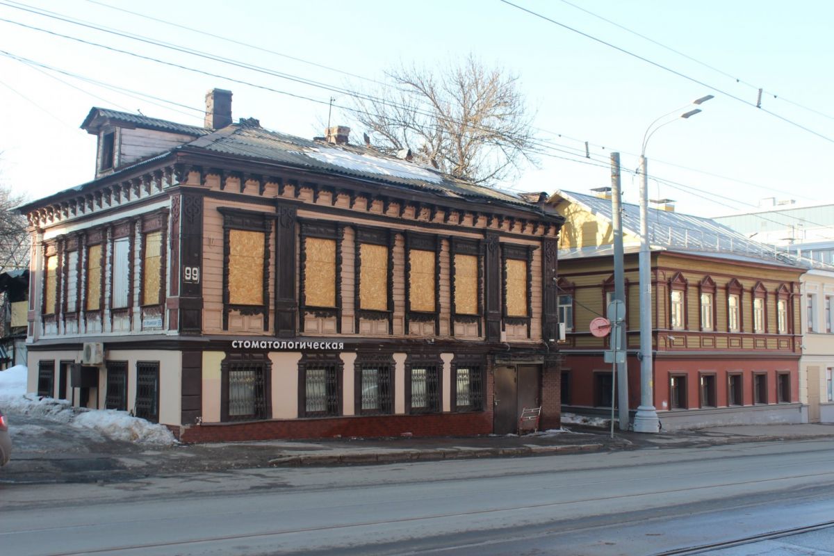 По соседству находится Дом купца Каменева, который в феврале пострадал от пожара. Рядом с ним по-прежнему стоит запах обгоревшего старого жилья. До происшествия в доме жили люди и работала стоматологическая клиника.