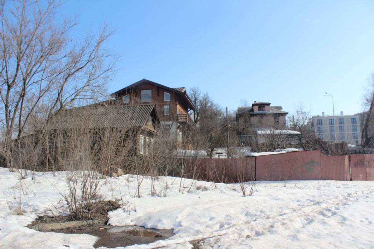 С той же улицы Большие Овраги исчезнет дом № 17а — одноэтажка с яблоневым садом в глубине квартала, а также здания № 21 и 21а. Четырехэтажный особняк и небольшой деревянный дом расположены по соседству на рельефном участке: отсюда хорошо видно соседний склон, где строится главный учебный корпус «Неймарка». Здесь люди тоже занимаются огородами и держат собак.