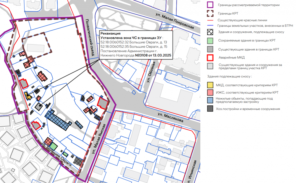 Реновация охватит 3,36 гектара — для этого контура утвердили решение о КРТ. Под ковш экскаватора пойдут дома № 7, 15, 15а, 17а, 21, 21а на Больших Оврагах, а также № 3а, 3б, 5а на Малой Ямской. Ранее региональные власти реквизировали здания № 3а, 5а и 15. Остальные дома находятся в частной или долевой собственности.